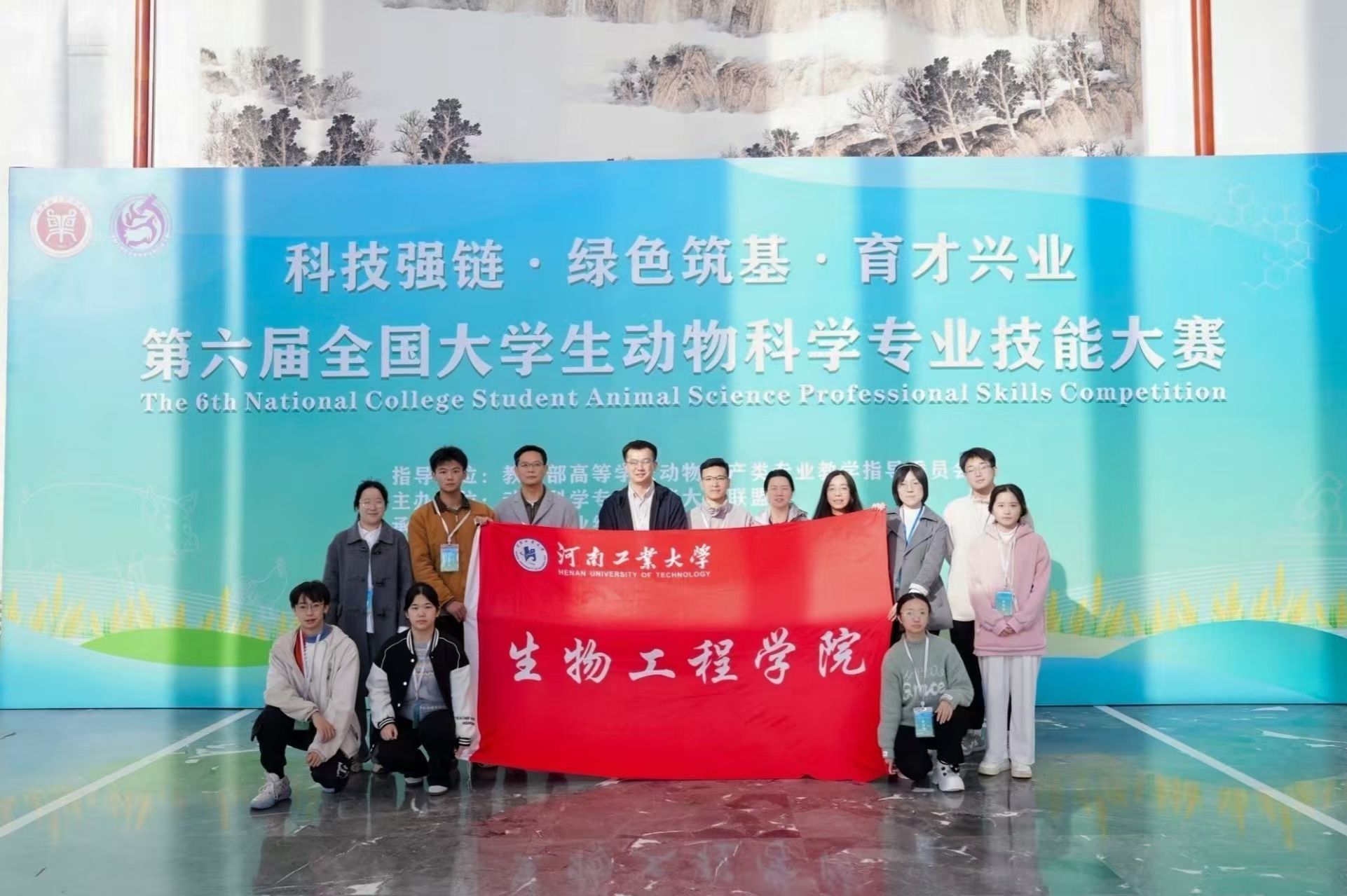 全国大学生动物科学专业技能大赛是由教育部高等学校动物生产类专业教学指导委员会指导,动物科学专业技能大赛联盟主办的动物科学专业领域高校和师生参与度最高、最具影响力的全国性、权威性赛事。第六届全国大学生动物科学专业技能大赛于2025年10月17日至19日在河南牧业经济学院隆重举行,本届大赛共吸引来自全国 73 所高等院校的 740 余名师生同台竞技。河南工业大学生物工程学院代表队凭借出色表现,在众多高校中脱颖而出,荣获国家团体一等奖及国家单项二等奖的优异成绩,创下我院参加本项赛事以来的历史最佳成绩,充分彰显了学院动物科学专业创新与实践方面的雄厚实力。