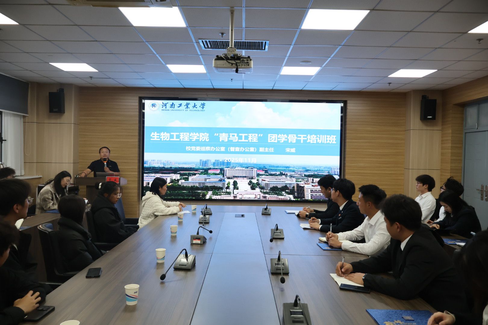 为提高青年学生思想政治觉悟,着力建设一支有理想、有信仰、有能力、有作为的学生骨干团队,生物工程学院于11月11日下午在惟德楼1313会议室举办“青马工程”团学骨干培训班,邀请校党委巡察办公室(督查办公室)副主任宋威作专题讲座,生物工程学院党委副书记蔡永平、团委书记杨雨薇以及生物工程学院第二十二届团委学生会全体成员参加活动。