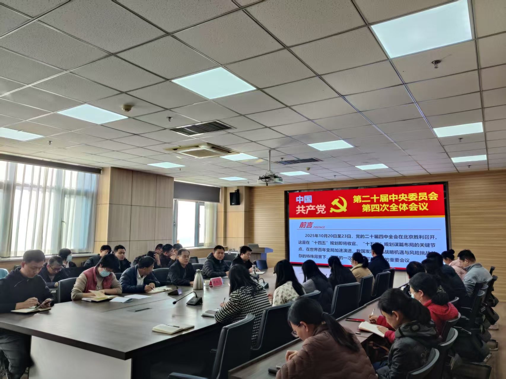 周相寅以“深悟党的二十届四中全会精神 勇担‘十五五’奋进新使命”为题,围绕“十四五”时期我国经济发展取得的重大成就、“十五五”时期经济社会发展的重大意义、系统部署和根本保证等方面,对全会精神作了系统阐释。他指出,党的二十届四中全会是在即将进入基本实现社会主义现代化夯实基础、全面发力的关键时期召开的一次十分重要的会议。全会审议通过的《中共中央关于制定国民经济和社会发展第十五个五年规划的建议》,擘画了中国未来五年的发展蓝图,是乘势而上、接续推进中国式现代化建设的又一次总动员、总部署。我们要以坚定拥护“两个确立”、坚决做到“两个维护”的高度自觉,不断把全会精神的学习宣传贯彻引向深入。