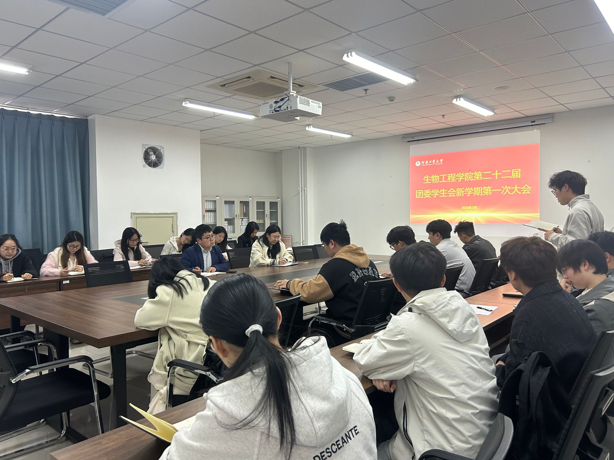 为扎实推进新学期团学工作有序开展、明确工作方向、凝聚工作合力,3月20日,生物工程学院第二十二届团委学生会在惟德楼1314会议室召开新学期第一次例会。学院党委副书记蔡永平、团委书记杨雨薇、辅导员孟建峰出席会议,会议由杨雨薇主持。