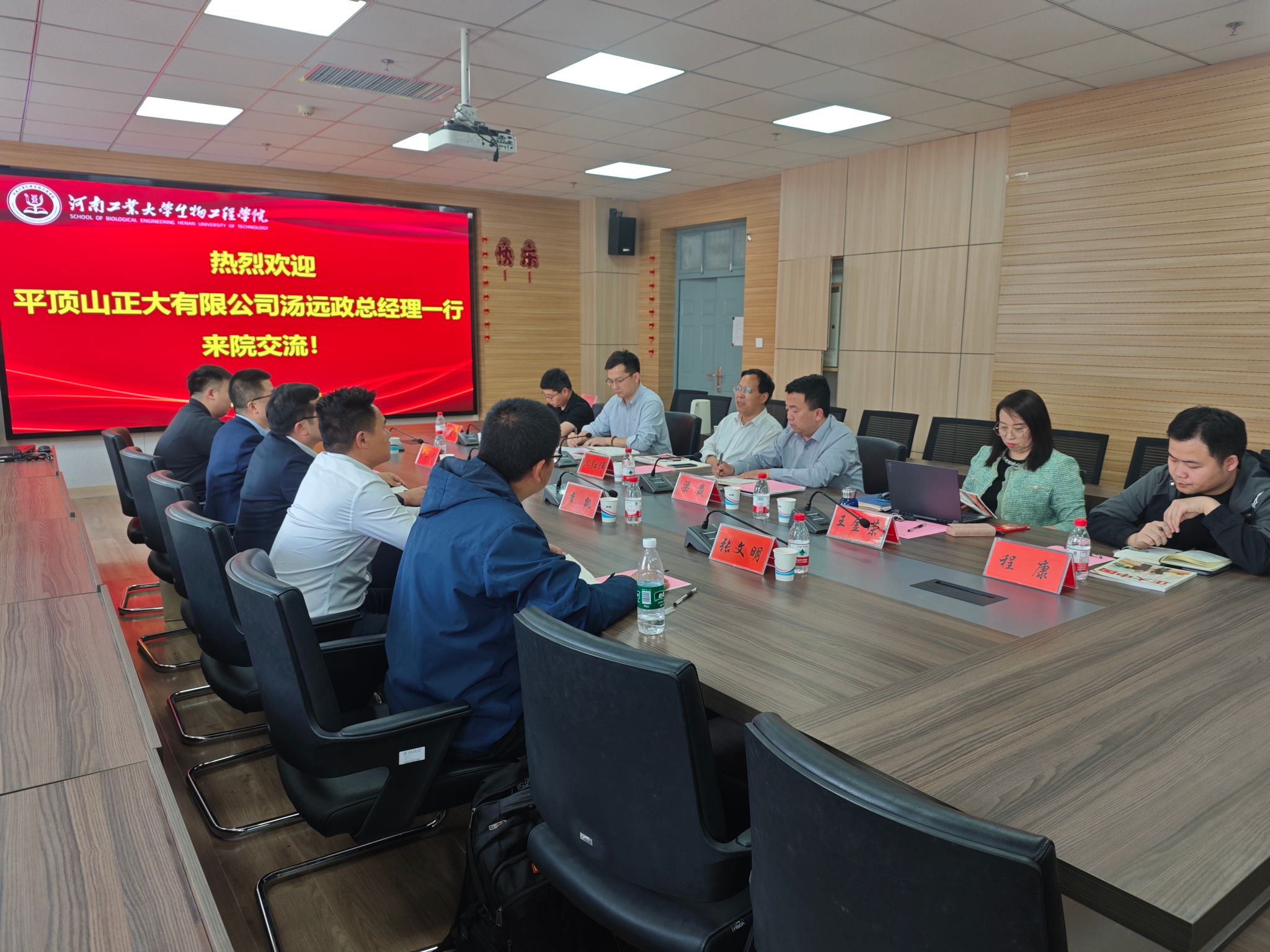 4月17日,平顶山正大有限公司总经理汤远政、河南区饲料事业人力总监刘永生、平顶山正大有限公司禽料销售总经理李凯、河南区禽料营养专家张文明、河南区蛋鸡七保食品安全专员王灿灿一行到访生物工程学院,就校企合作事宜进行深入交流。学院党委书记卫红伟、副院长梁赢、“畜牧学”学科带头人王金荣、动科系主任乔汉桢及部分骨干教师参加座谈会。会议由副院长梁赢主持。